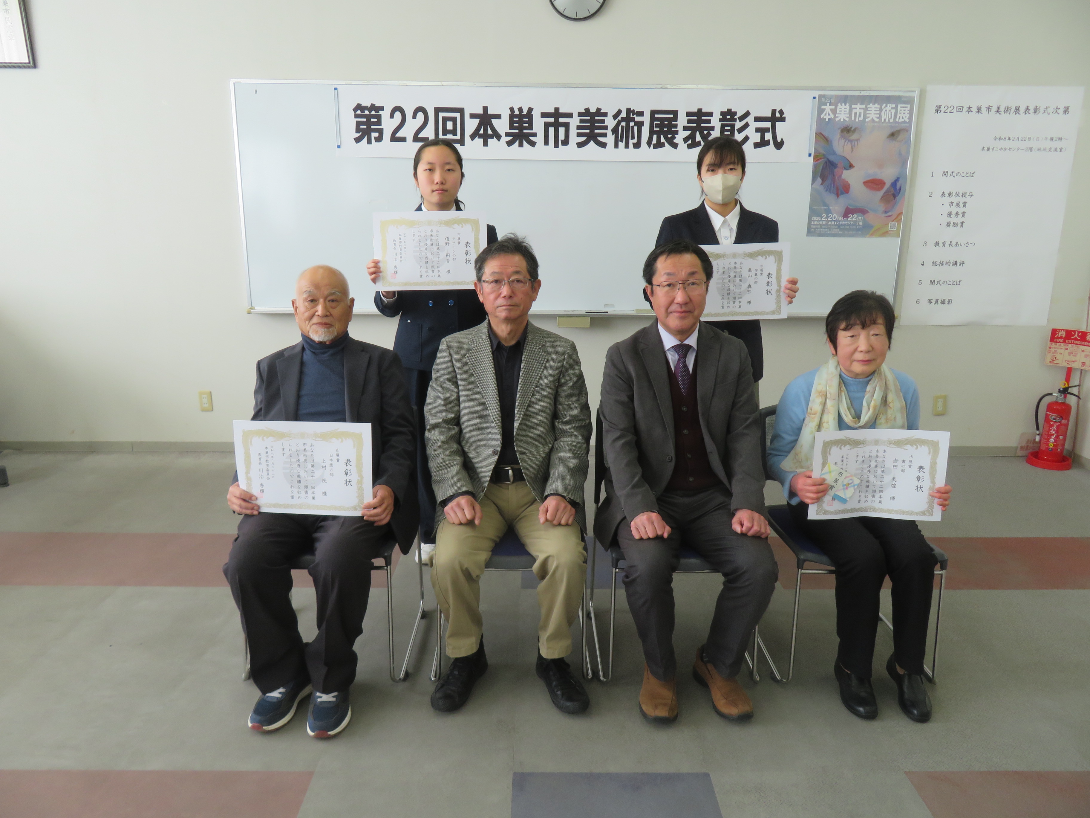 市展賞・優秀賞受賞者は、教育長から表彰状と副賞が授与され、最後に記念撮影を行いました。