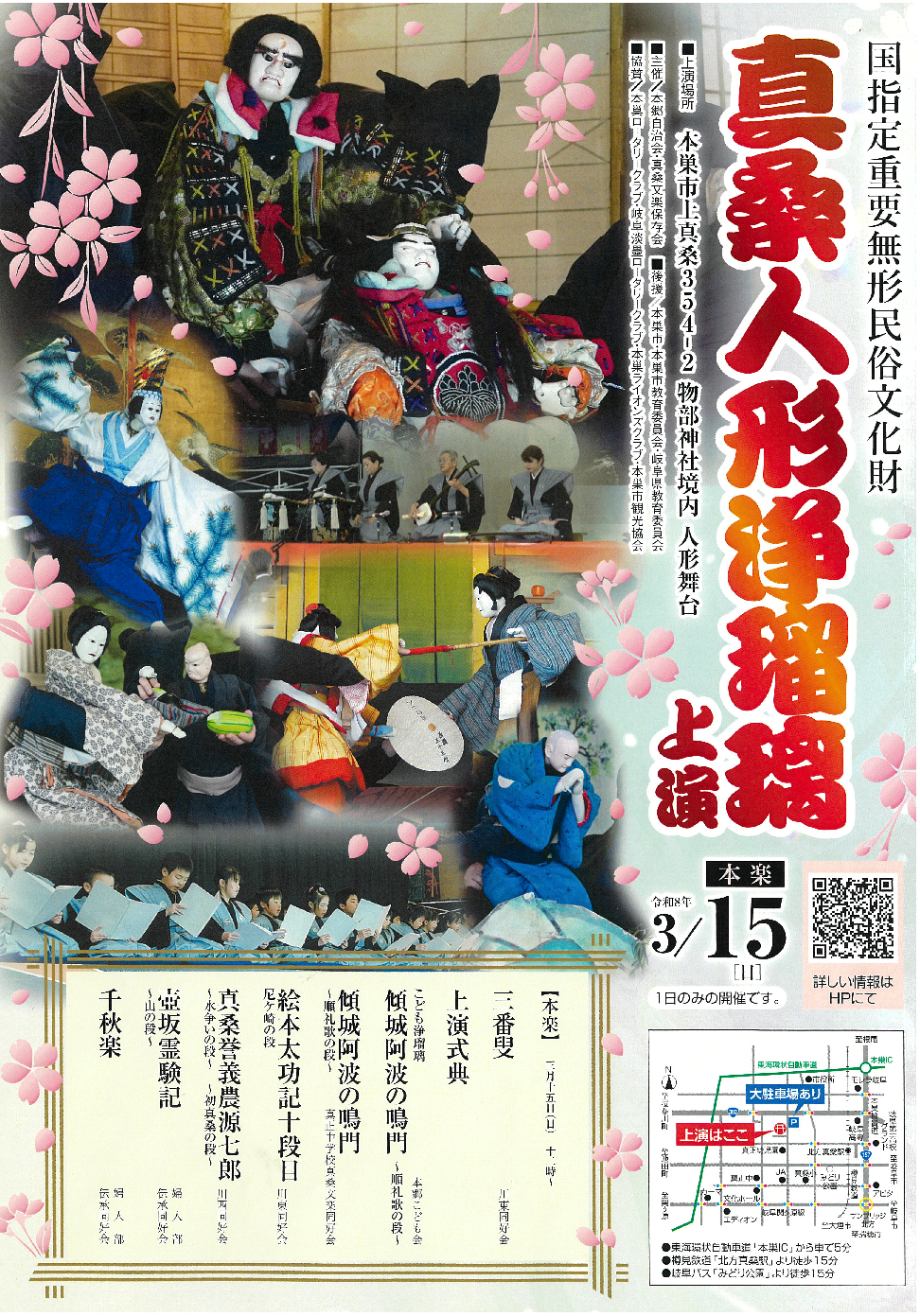- 上演場所:本巣市上真桑354番地2 (物部神社境内 真桑の人形舞台)