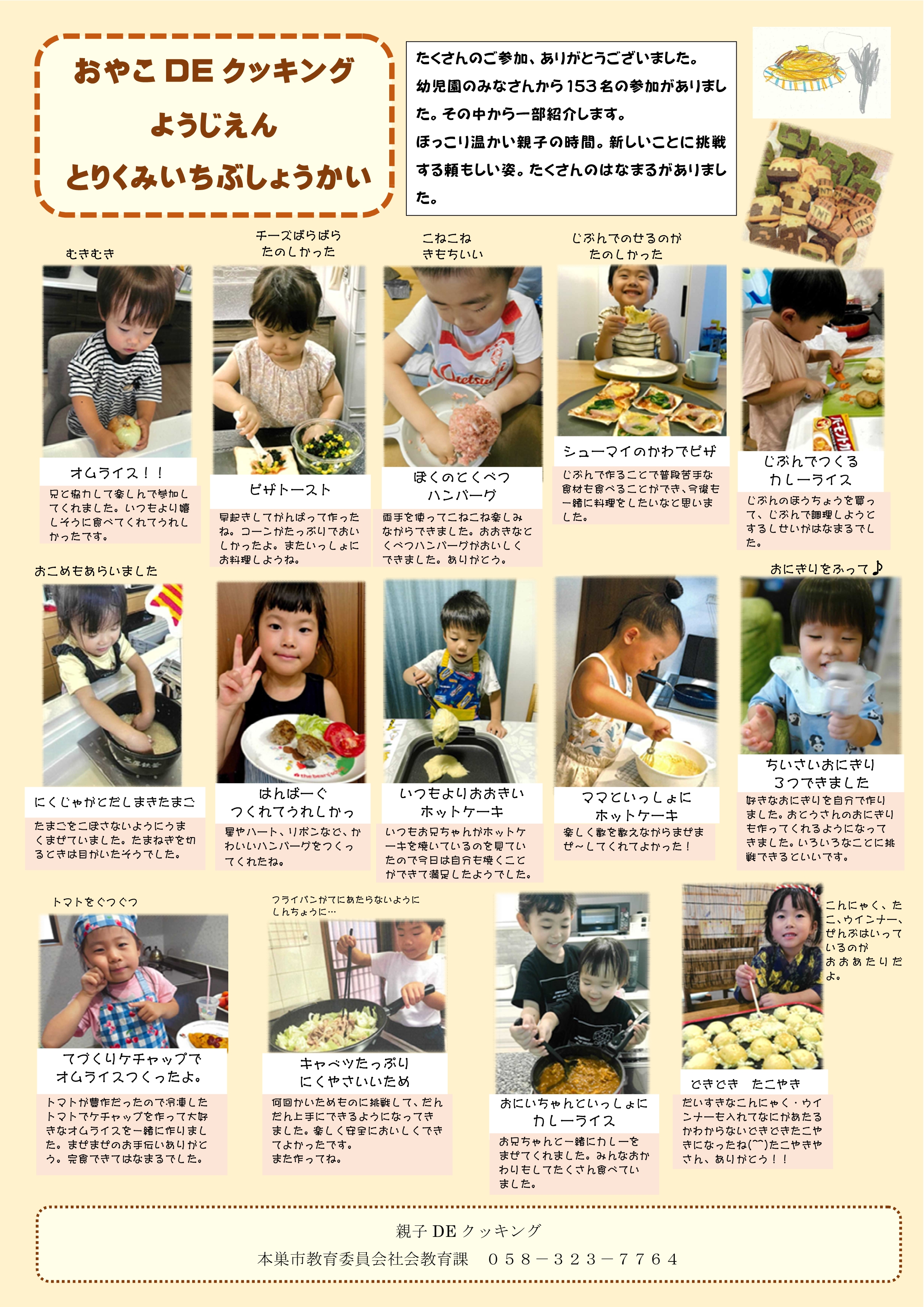 夏季休業期間を利用して本巣市内幼児園児・小中義学生を対象に「親子DEクッキング」を実施しました。
