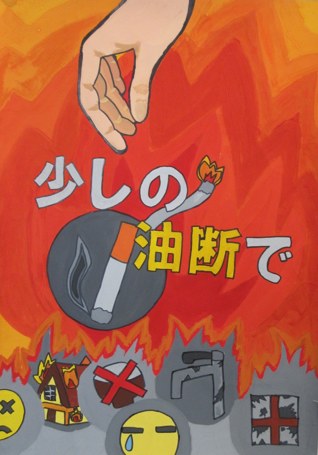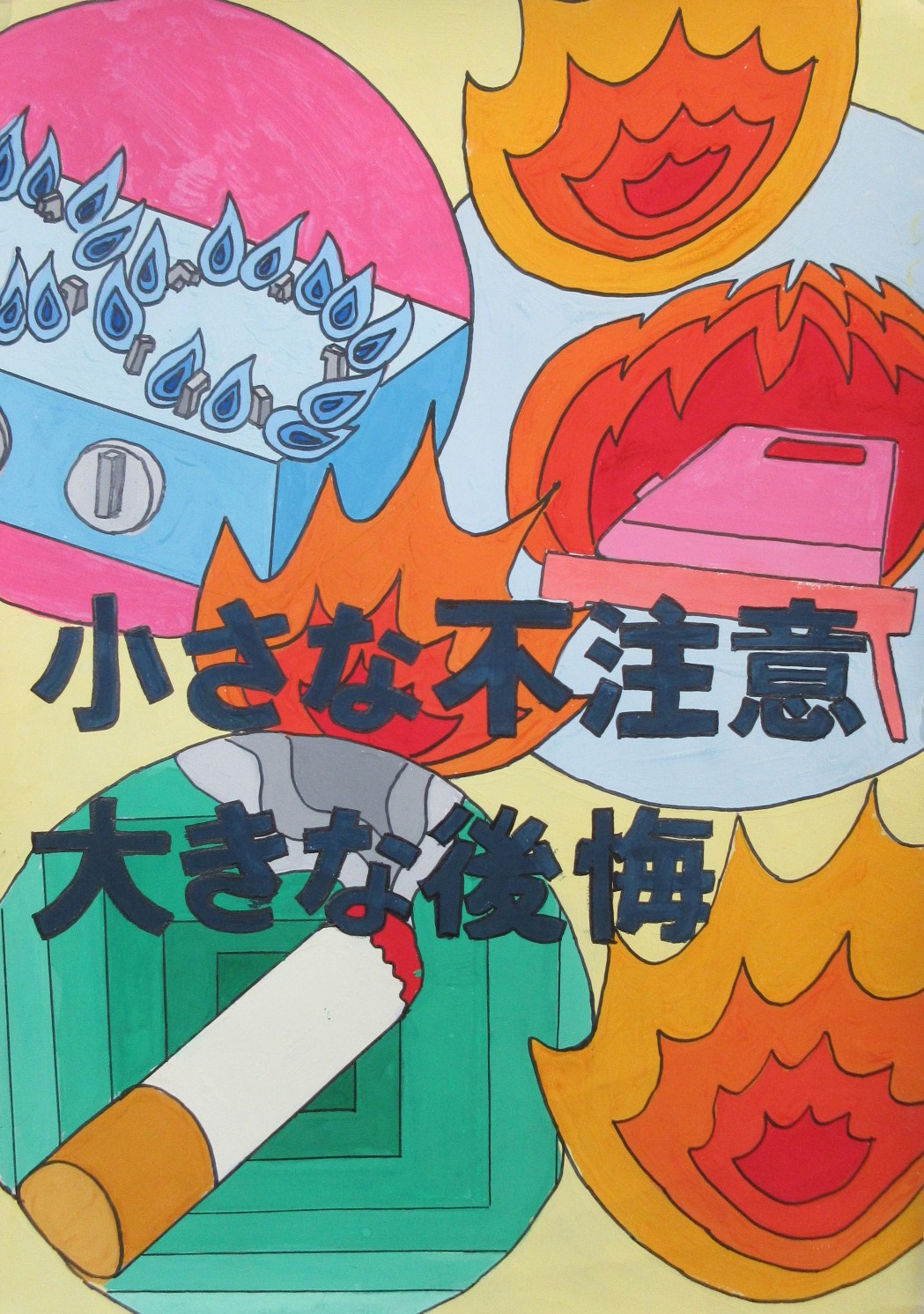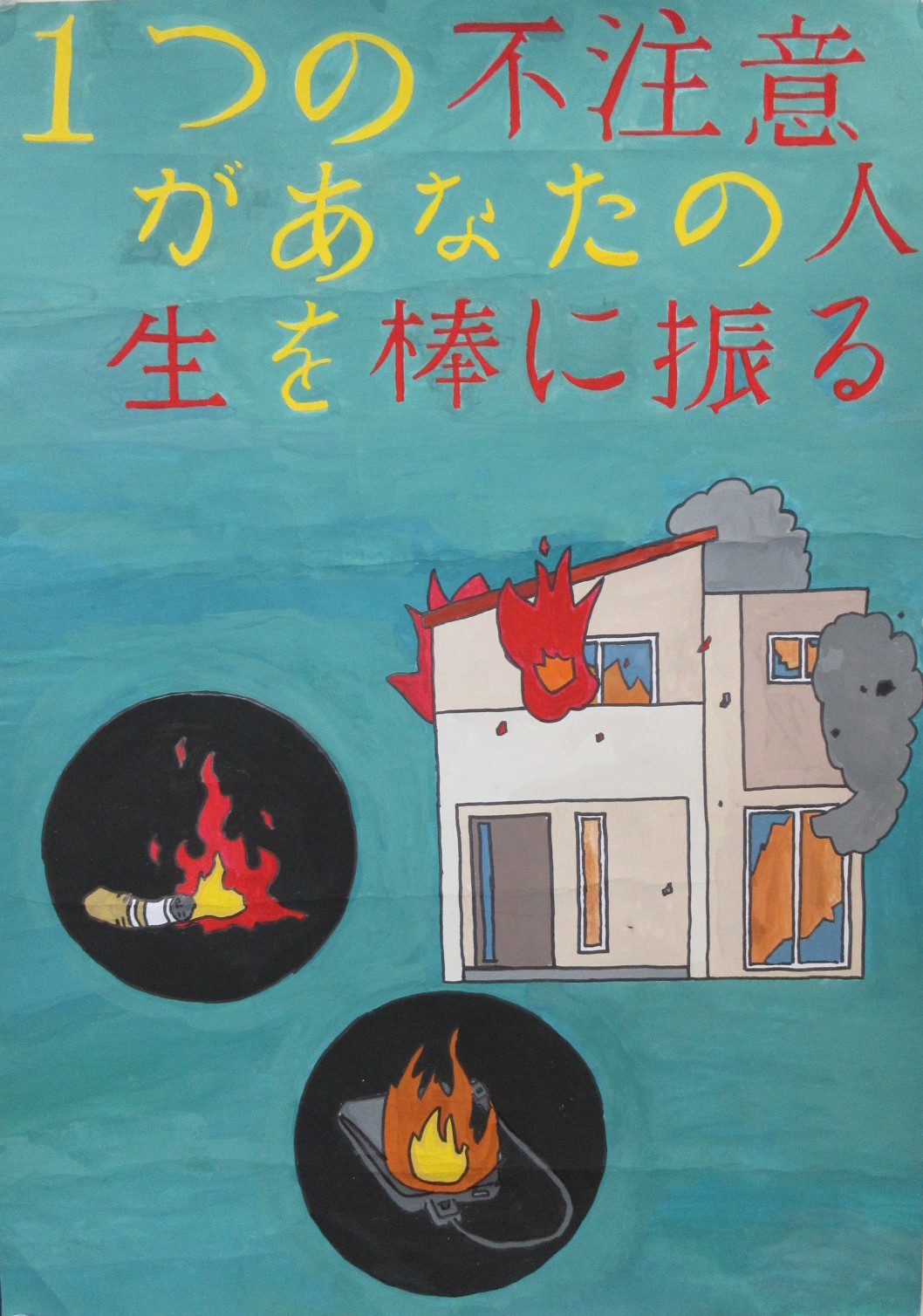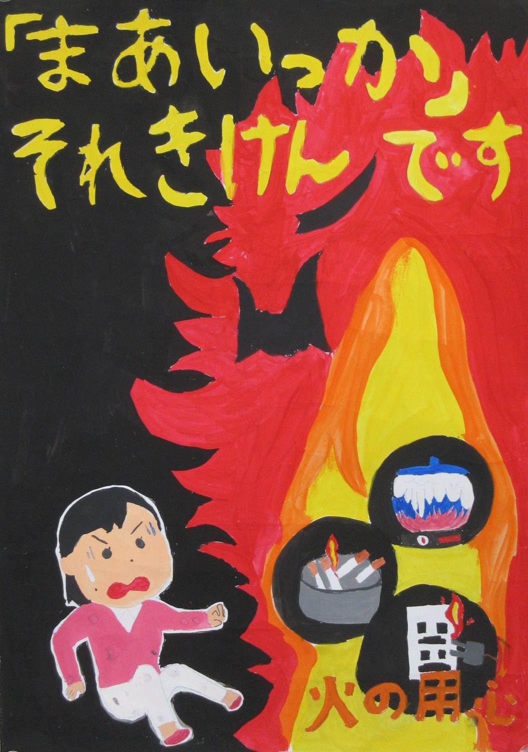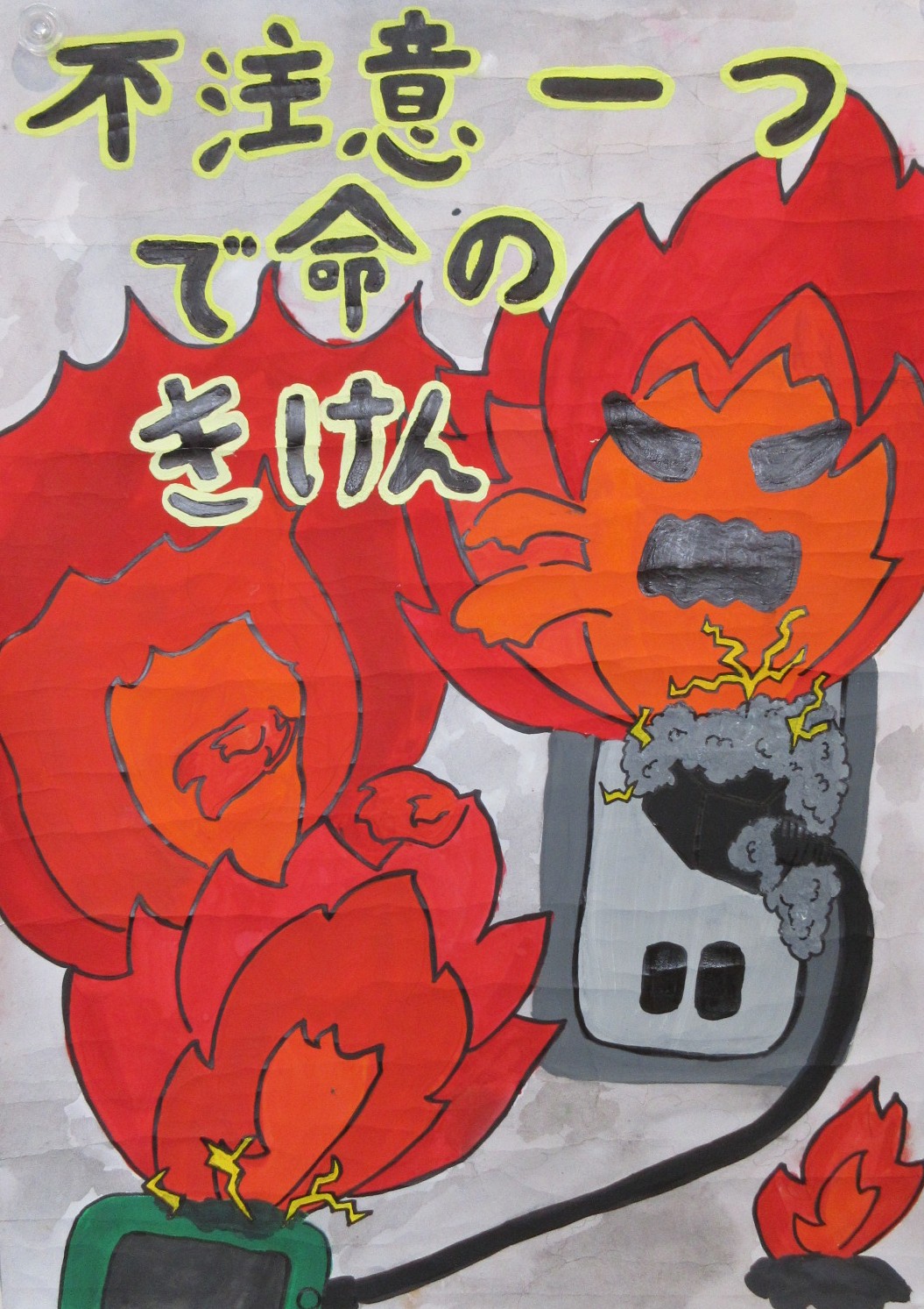 秋季全国火災予防運動(11月9日から11月15日)は、火災が発生しやすく、大火になりやすい時期を迎えるため、全国一斉に展開されます。この運動期間を通じて、火災予防思想の普及を図るため、火災予防に関するポスターを根尾学園(前期)および市内各小学校6年生の少年消防クラブ員を対象に募集しました。応募作品について市内の有識者による審査の結果、次のとおり入賞作品が決まりました。