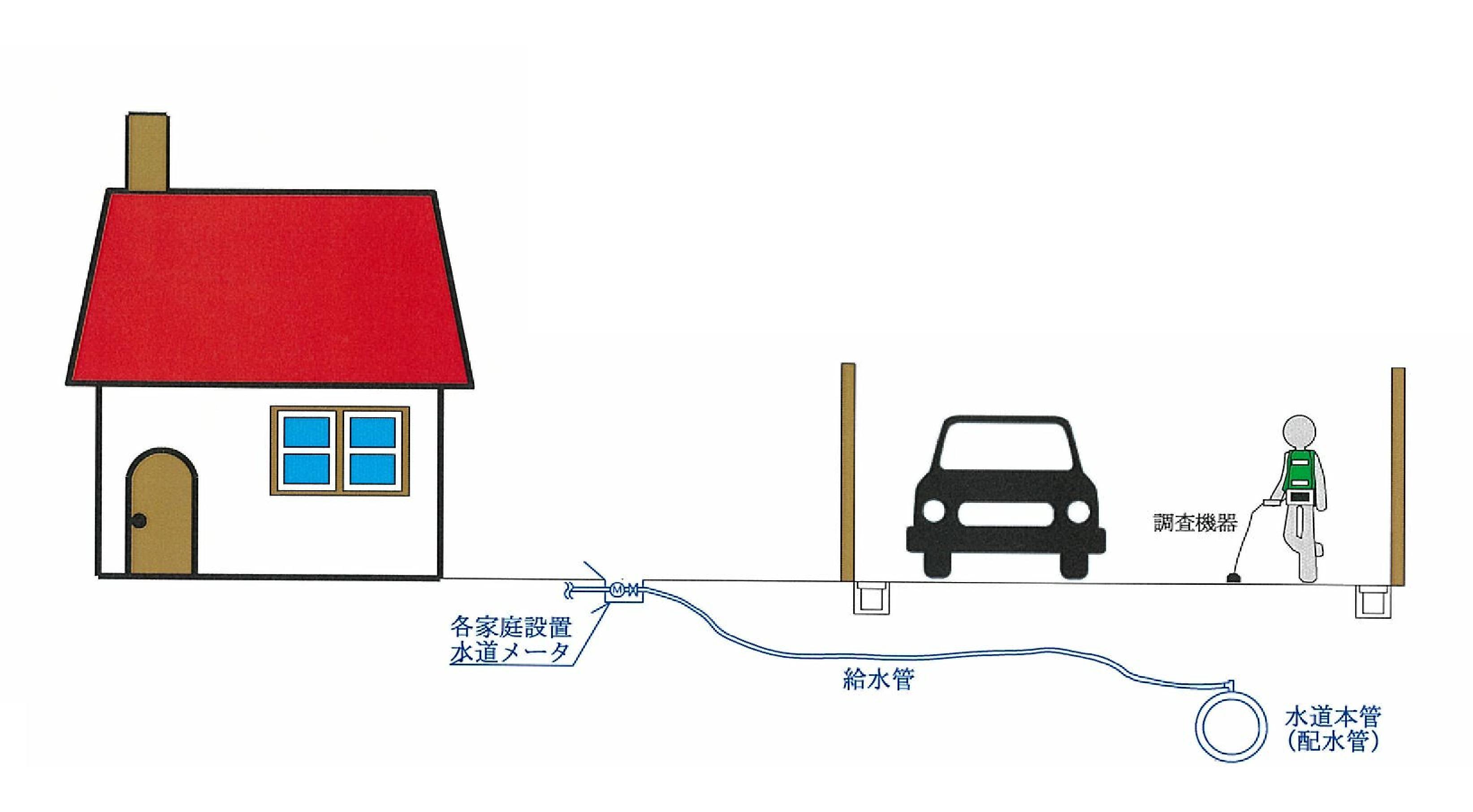 このたび、貴重な資源である「水」を無駄にしないために、市が委託した調査会社による水道管の漏水調査を実施します。調査対象は、道路に埋設されている水道本管(配水管)および水道メーターまでの給水管です。