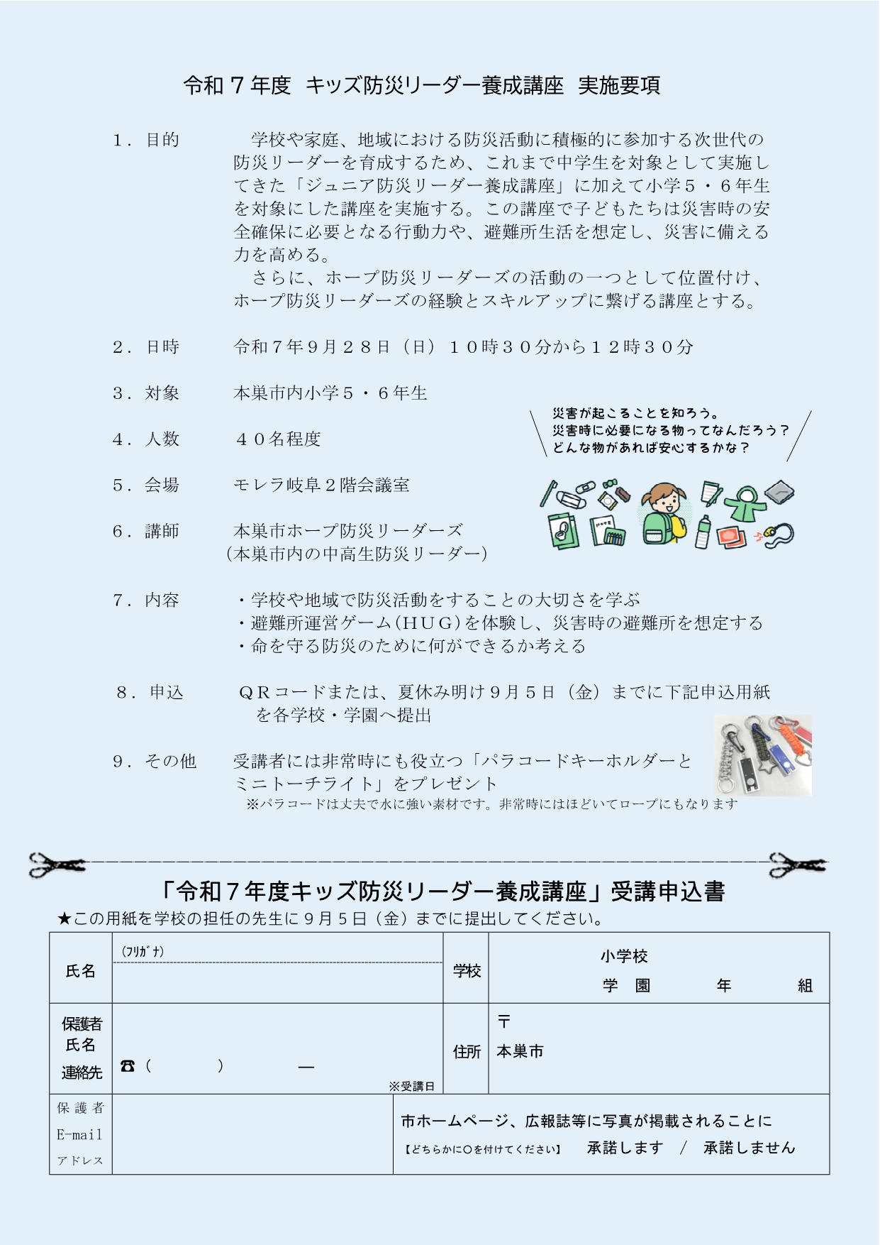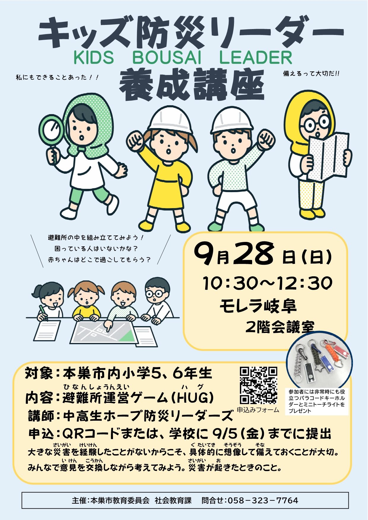市内小学5・6年生を対象に「キッズ防災リーダー養成講座」を開催します。